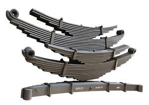 Compuestos por hojas de acero curvadas en arco, estos paquetes, conocidos como resortes trapezoidales, son comunes en camiones, remolques y tractores. Distribuyen la carga del vehículo a través de varias capas, ofreciendo un soporte robusto y eficiente.